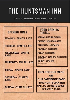 Address: The Huntsman Inn, 3 West St, Rosemarket, Milford Haven, SA73 1JH